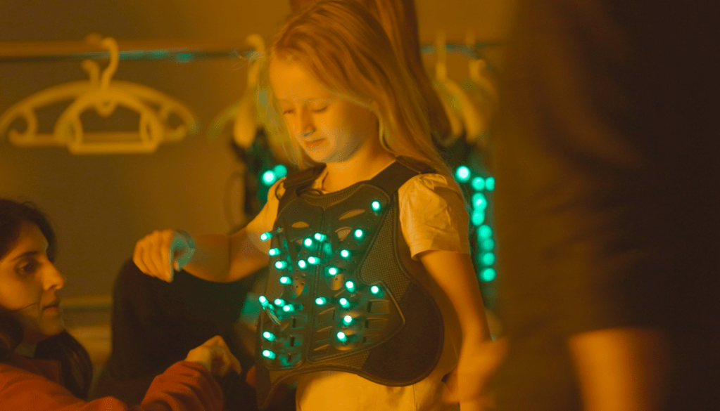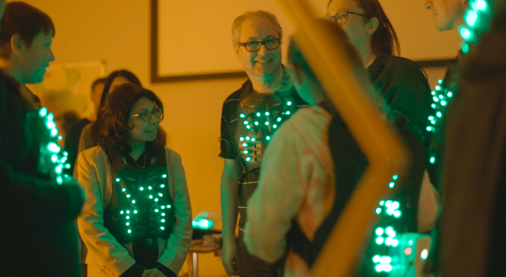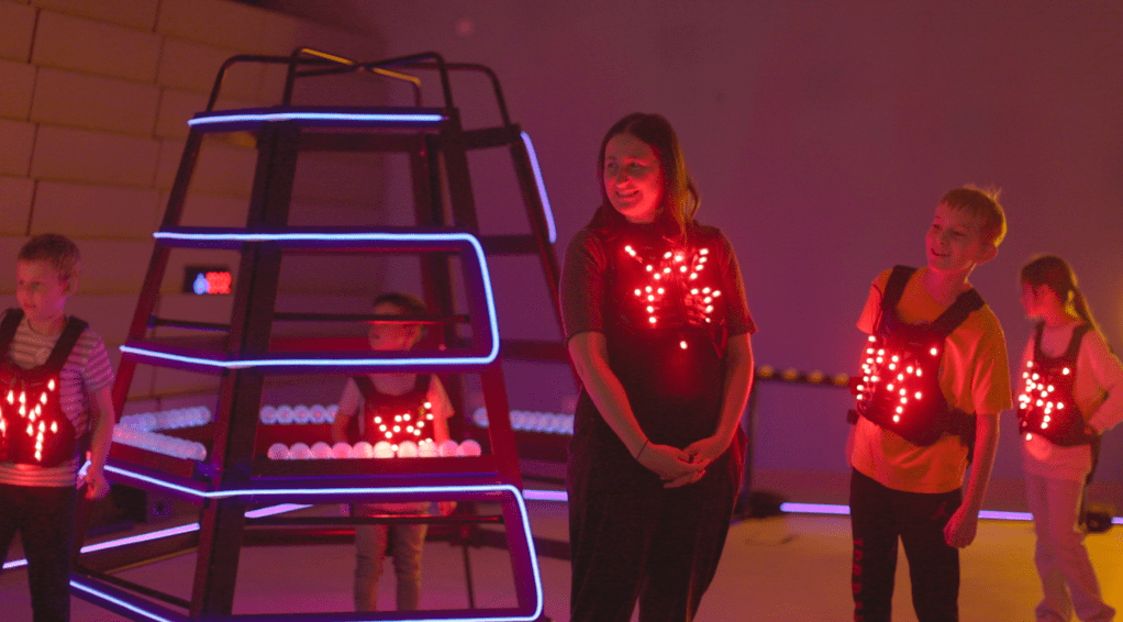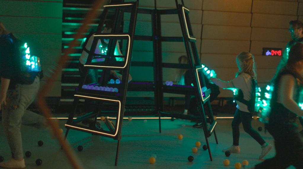 In HIVE HEROES, you will step into the role of a worker bee, equipped with wearable technology as you embark on a collective mission to protect your hive. A fast-moving virus threatens the hive, and it’s up to you and your fellow bees to stop it. As you play, you will work together to share immunity by storing antiviral RNA in a healing cell, a process inspired by the real-world research on RNA cooperation between organisms.